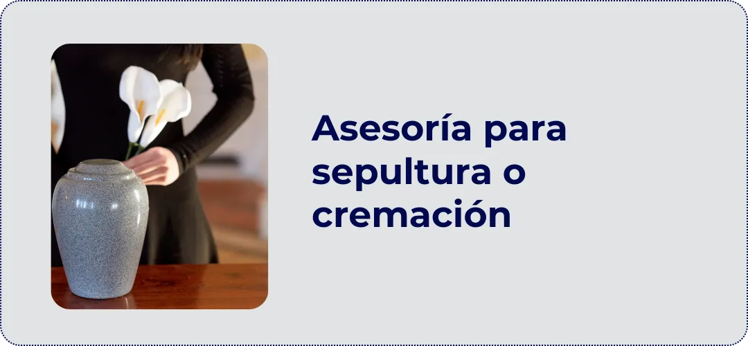 El plan contempla asesoría tanto para entierro tradicional como para cremación. Si aún no tiene claridad, lo orientamos con calma para que tome una decisión informada y acorde a su familia.